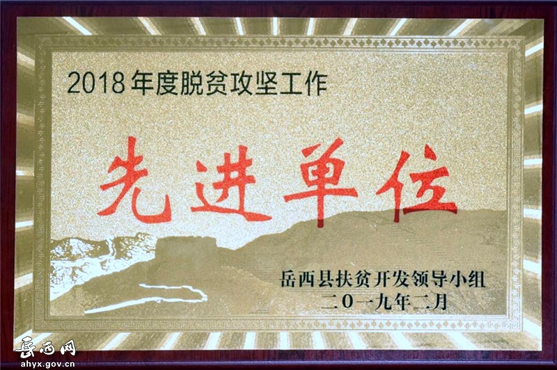 岳西网讯(通讯员 储诚润)近日,安徽天鹅集团荣获县扶贫开发领导小组授予的“2018年度脱贫攻坚工作先进单位”称号。