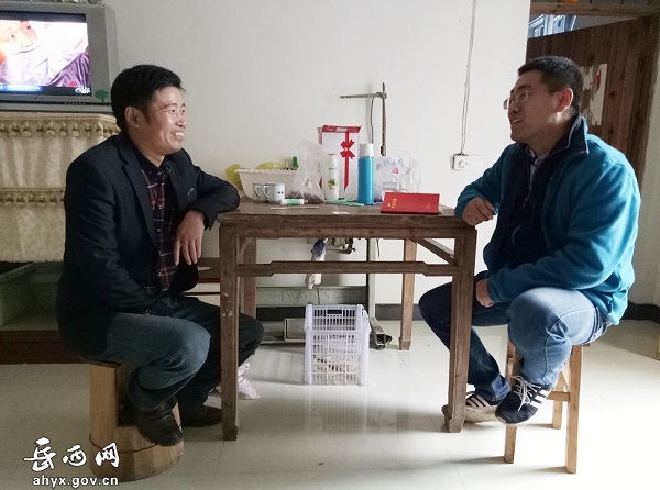为迅速融入岳西扶贫工作,周辉秉着在“做中学,学中做”的工作态度,在当地干部群众的热心帮助和支持下,逐步熟悉了扶贫工作业务,并积极开展走访活动,在短短三个月便走访完全村所有农户,掌握了全村基本情况,逐步绘成了百步村脱贫攻坚作战图。周辉对每一户家庭情况、致贫原因都了如指掌,掌握了脱贫攻坚的第一手信息,也让周辉熟悉了百步村的方言,和村民建立起了深厚感情,这为日后因户施策,制定“一对一”帮扶措施,解决住房安全、大病救助、四净两规范等问题打下了坚实基础。