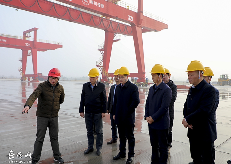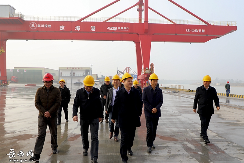 何斌一行首先来到定埠港,仔细察看了港口规划图、航运图、布局规划图等展板,听取定埠港有关项目情况汇报。