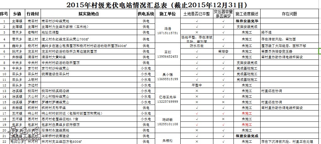 2015年村级光伏电站情况汇总表(截止2015年12月31日)