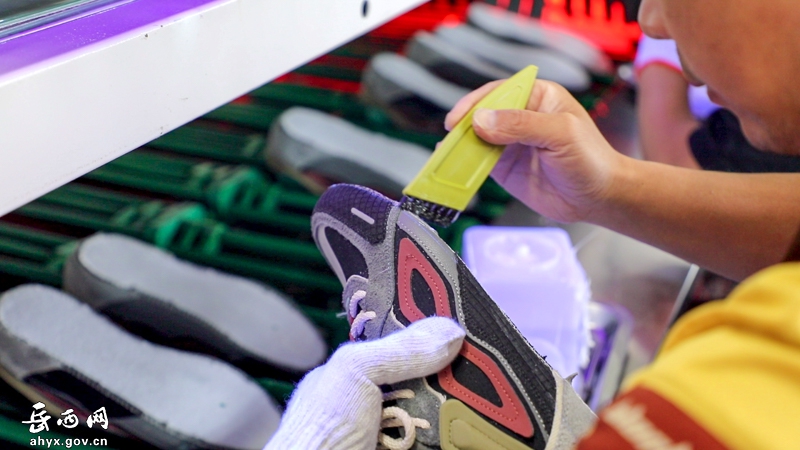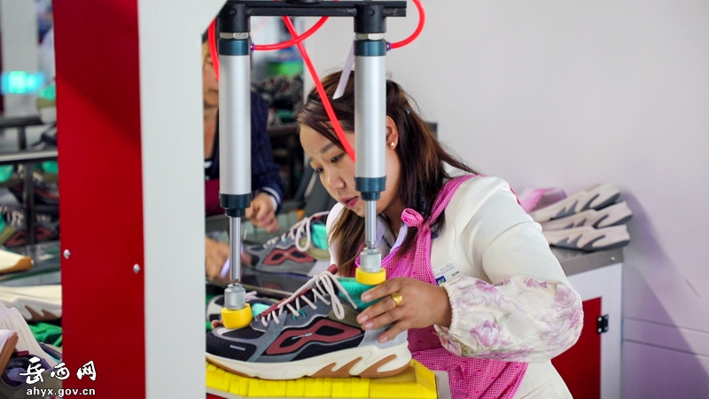 据了解,该公司于2022年2月22日在岳西经济开发区正式投产,目前建成生产线2条,单条生产线日产运动鞋3000双左右,有员工300余名,其中六成来自县内。