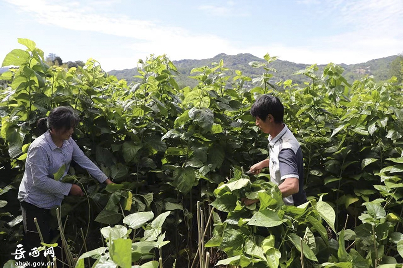 蚕农在岳西县莲云乡莲塘村高产桑园示范基地采摘桑叶 徐国康/摄