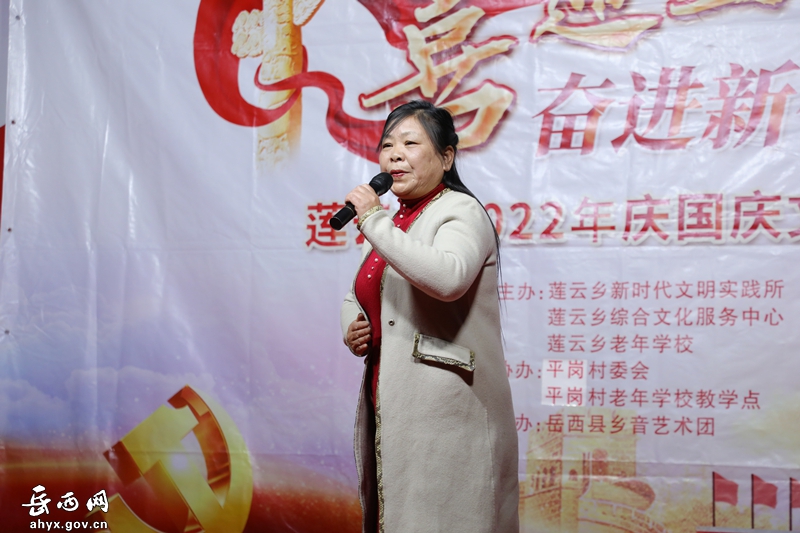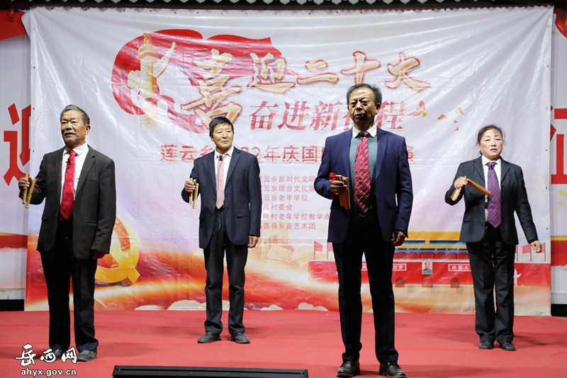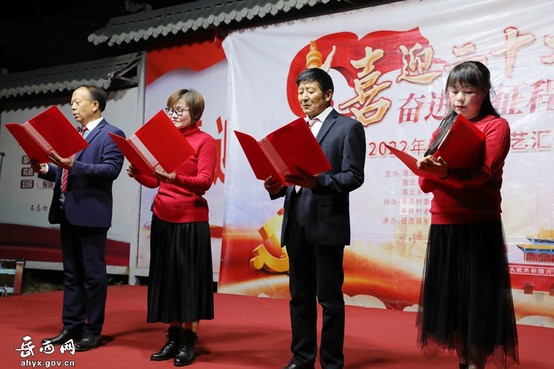 岳西网讯 (融媒体中心记者 董德景)10月11日晚,由莲云乡新时代文明实践所、莲云乡综合文化中心、莲云乡老年学校联合主办的“喜迎二十大 奋进新征程”文艺汇演在平岗村举行。
