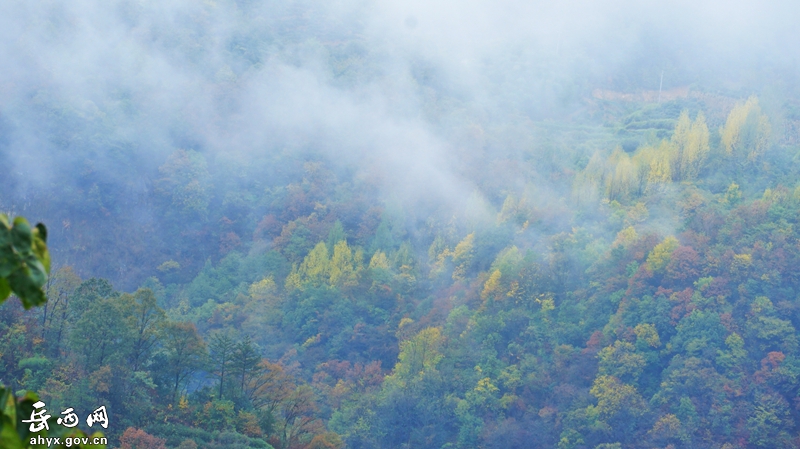 岳西网讯(融媒体中心记者 余翠兰 唐岳红 王丽 通讯员 徐声文)人间忽晚,山河已秋。大别山的秋天是灿烂的。碧水云天,层林尽染,在岳西县五河、河图、白帽、响肠、黄尾、毛尖山等乡镇,远远近近的山坡从山脚到山顶,由深绿到浅绿、浅黄、黄、红、深红。黄绿相交、错落有致,仿佛自然的织锦,又似浓墨重彩的油画。秋风拂过,彩浪翻滚,落叶翩翩,分外妖娆。挂在枝头的小柿子,就似一个个红灯笼,微风拂过,它不停地向你挥手示意。