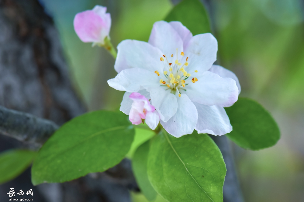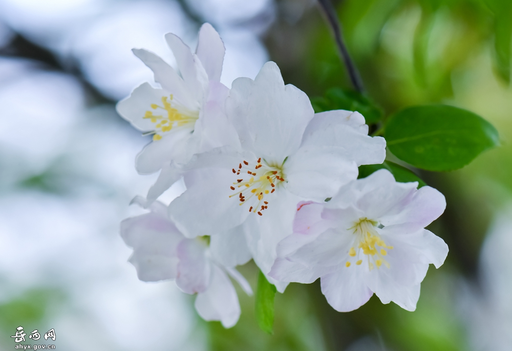 4月,岳西县竹篙尖公园内的海棠花如期盛开了。海棠花开,岳西的春天已到最美的季节。(特约摄影师 吴岳生)