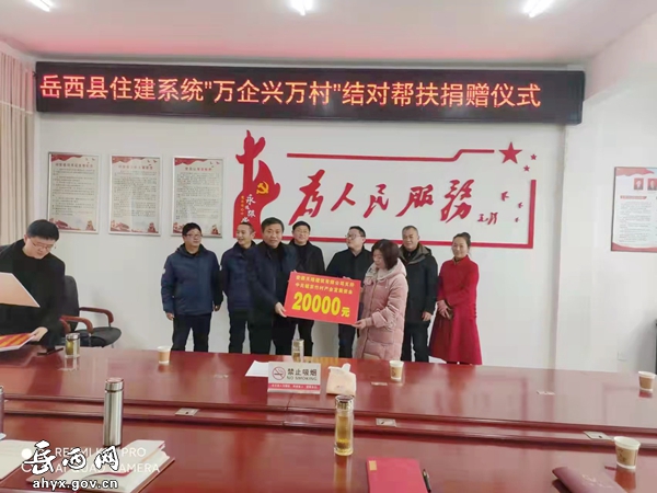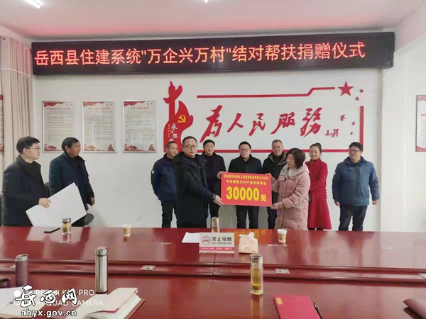 1月21日上午,县住建局到中关镇京竹村开展“万企兴万村”结对共建帮扶活动,助力乡村爱彩365彩票官方app下载_体育在线365下载_Best365官网登录发展。县住建局局长汪球、镇党委书记程从阳、岳西融创项目管理有限公司等五家企业负责人参加此次帮扶捐赠活动。