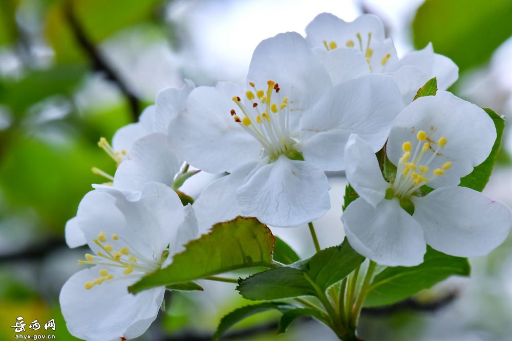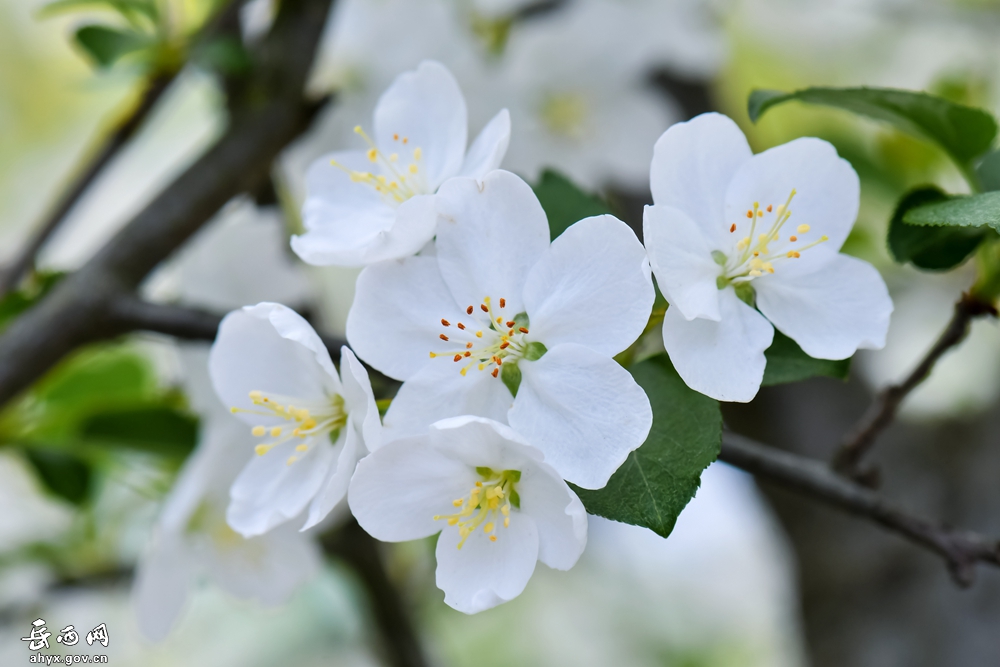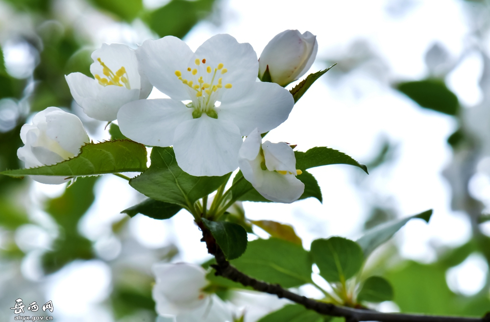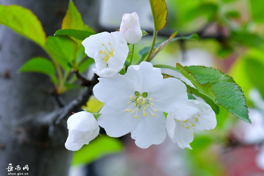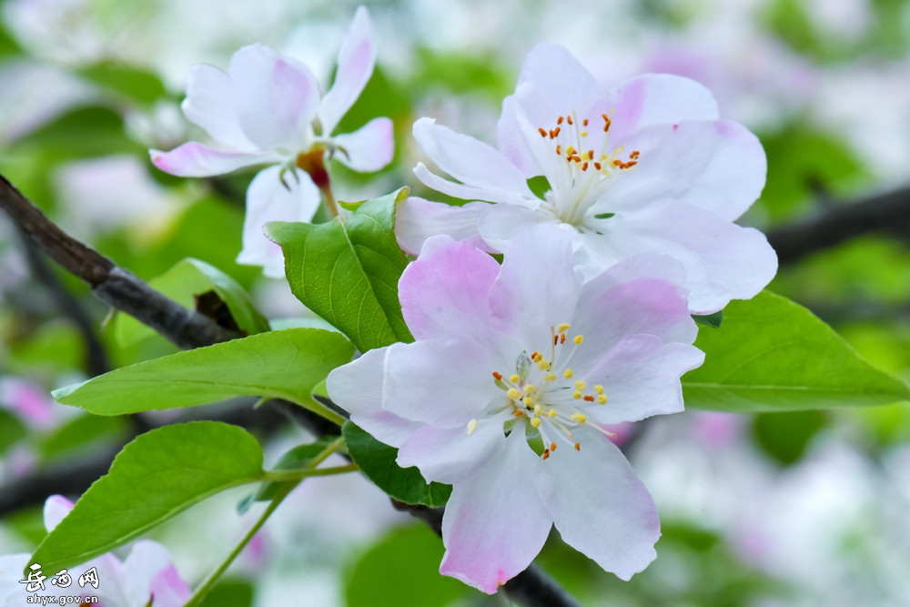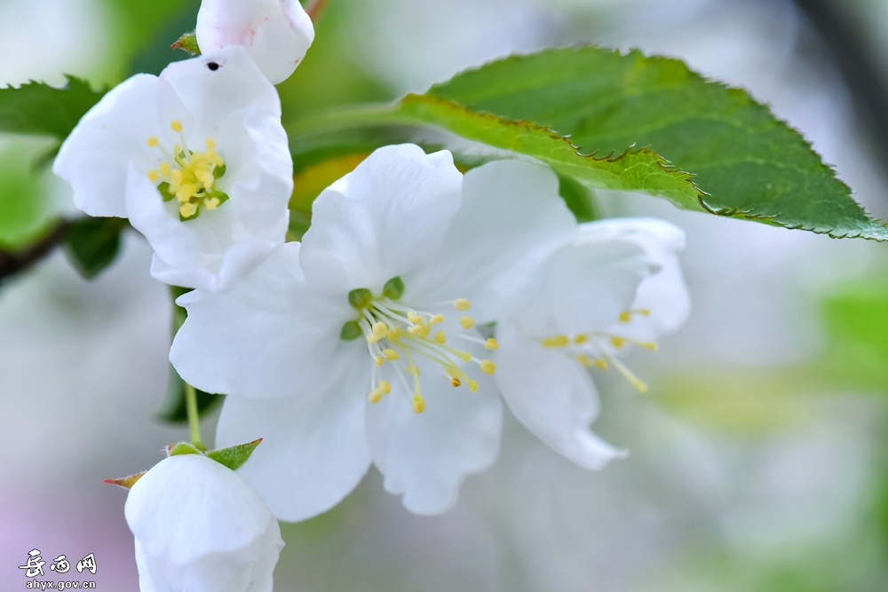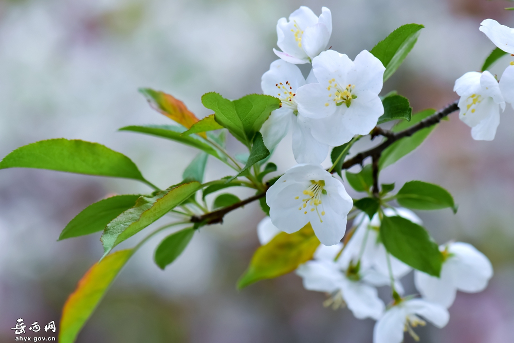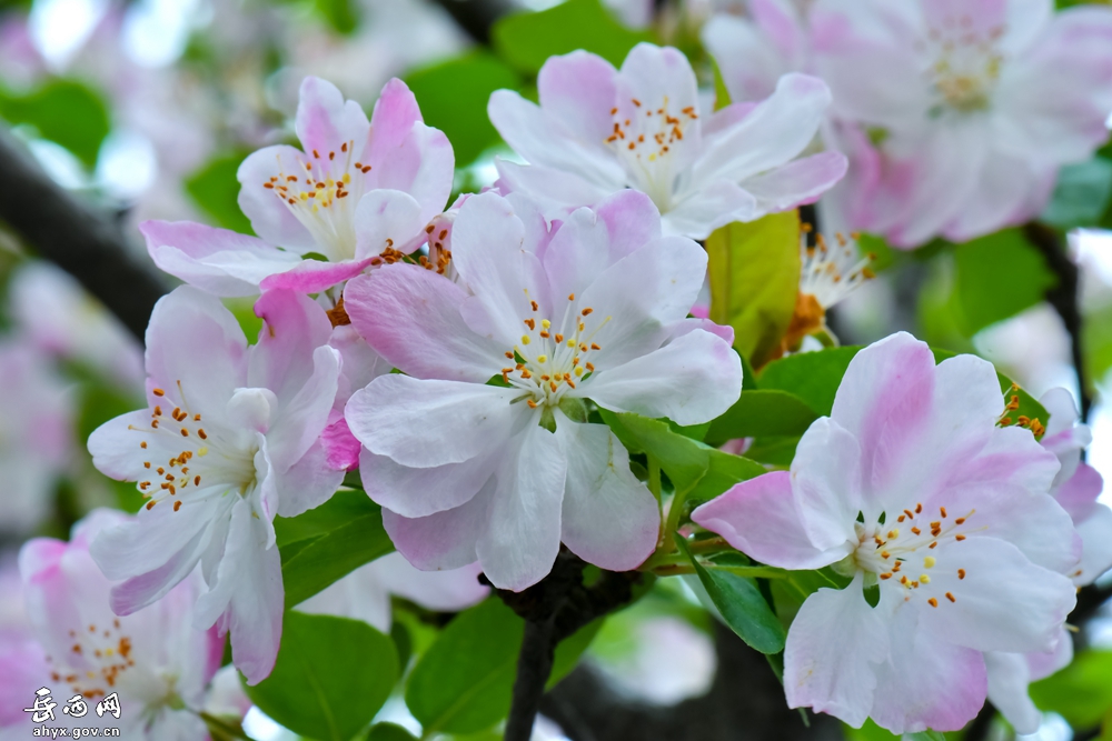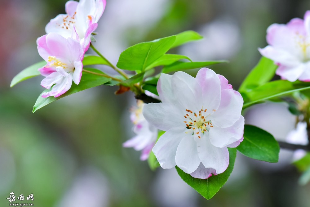 4月,岳西县竹篙尖公园内的海棠花如期盛开了。海棠花开,岳西的春天已到最美的季节。(特约摄影师 吴岳生)