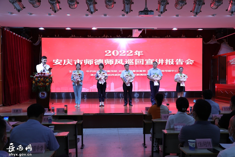 岳西网讯(融媒体中心记者 董德景 实习记者 王锦鹏)8月12日,由中共安庆市委宣传部、安庆市教育体育局、安庆市新闻传媒中心主办的2022年安庆市师德师风巡回宣讲报告会在岳西开讲。安庆市教体局副局长刘秀芳,县委常委、宣传部部长刘亚维出席报告会。县教育局部分班子成员及股室负责人,各级各类学校校长、教师代表聆听报告。