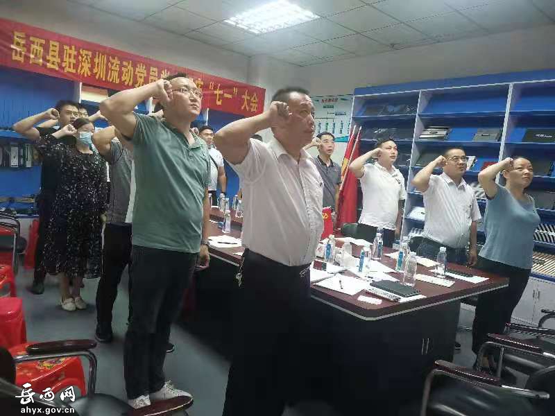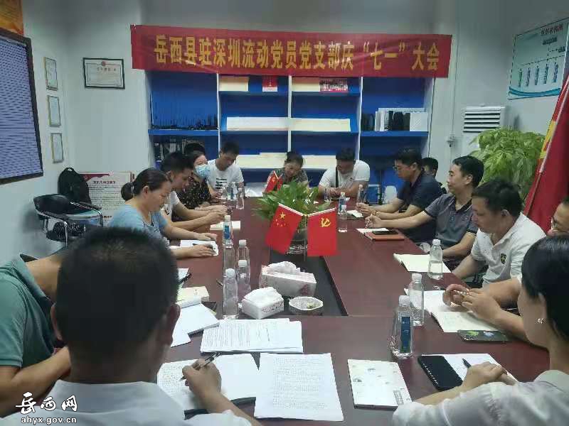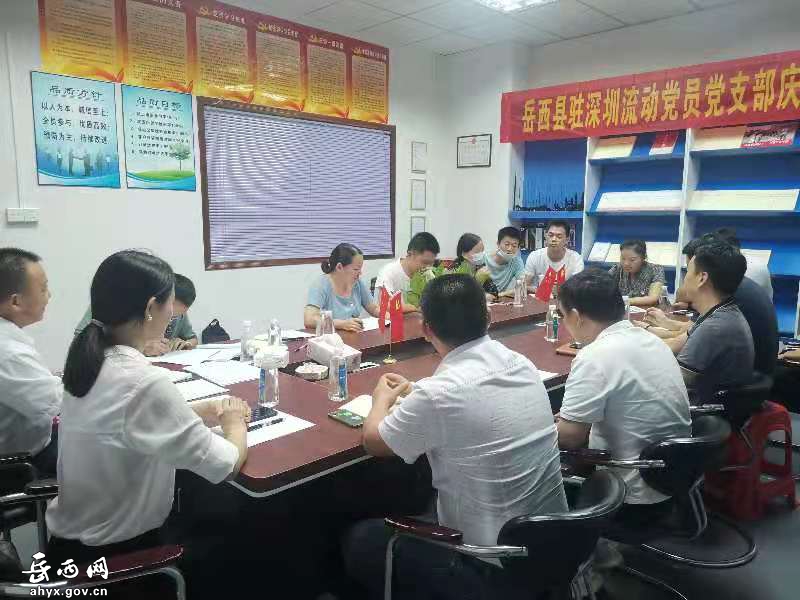 7月25日,岳西县驻深圳流动党员党支部开展党史学习教育主题党日活动,安庆驻深圳商会常务秘书长刘素素和14名在深党员参加会议。