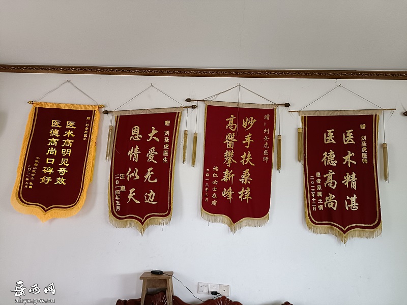 走进腾云村刘圣虎家中,映入眼帘的是一面面锦旗。