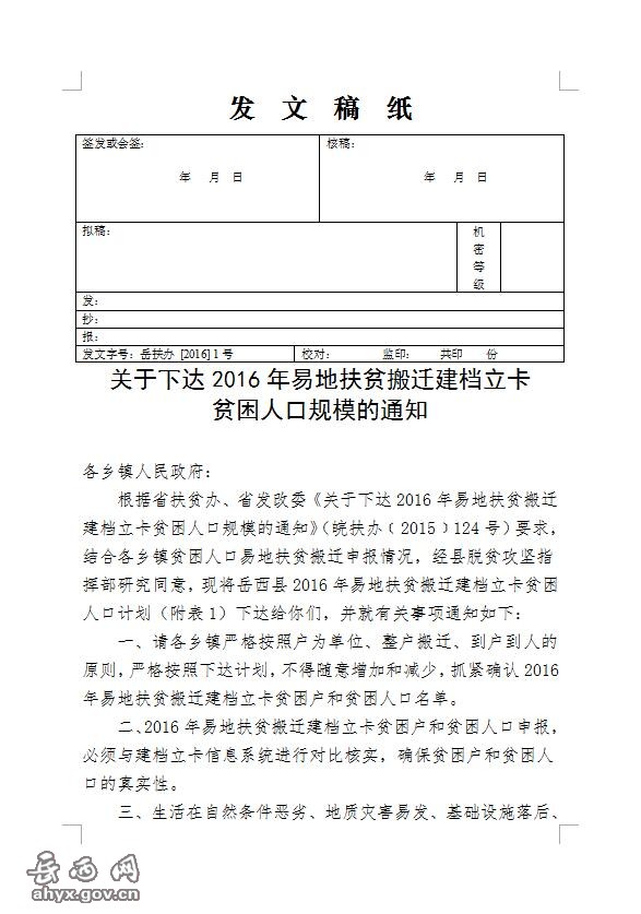 关于印发《岳西县贫困户直接脱贫机制》的通知