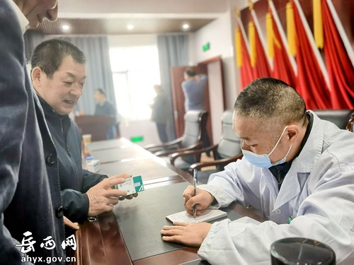 10月天气开始转冷,而一场秋雨给皖西南大地带来久违的雨露。一大早,江河村的村民便集中到村部,看到县里的义诊专家,纷纷热情地上前打招呼。天气原因,怕随时下雨,村里把义诊场地安排到村部二楼大会议室,群众自发地排排坐,等候专家为他们免费诊疗。