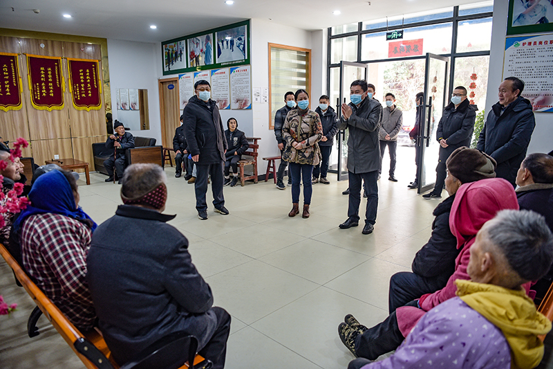 当日下午,昂朝坤一行在菖蒲镇党委书记王启兵的陪同下,首先来到菖蒲养老服务中心,看望居住生活在这里的农村五保老人,给每位老人拜年,同时和政协副主席徐山梅一起给每位老人分别送上了过春节的大红包。接着昂朝坤等参观了五保老人居住的宿舍、吃饭的食堂,详细了解老人日常生活情况和护理照顾情况。昂朝坤对这里像“宾馆”一样整洁卫生的生活居住环境以及工作人员精心照料为每一位老人的做法给予充分肯定。要求工作服务人员继续坚持为五保老人做好服务工作,让他们在这里安享晚年。