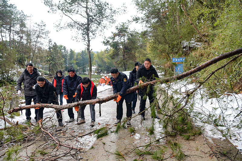 此次暴雪也造成菖蒲镇境内的省道、县道、乡村道路通行困难,带来安全隐患。菖蒲镇撞钟村、西畈村、里仁村、白云寨村、港河村等村的党员干部群众以及镇政府、各单位的志愿者,从2月7日至2月8日,自觉上路,动用机械,拿着工具,除冰铲雪,清除倒伏在公路上的树木等障碍物,尽最大努力保障公路通行安全。