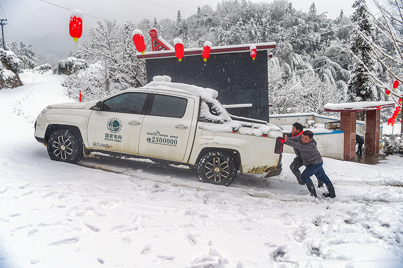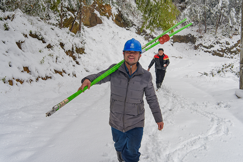 2月7日当天,国网菖蒲电供区电力线路多处跳闸,涉及6000多户居民大面积停电。国网岳西县供电公司菖蒲中心供电所10多名职工,从2月7日凌晨4时30分就出发。黑夜里,他们冒着纷飞大雪,带着装备分头沿着高压线路巡查,查找故障原因,奋力砍除倒伏在高压线上的竹木。车辆到不了的山岭,他们就弃车步行。笔者现场见到,他们忙得喝不上一口水,还要不停的回答群众来电询问,耐心解释停电原因,答复供电时间。由于这次线路故障多且路线长,又在深山区,加上菖蒲供电所人手少。菖蒲供电所寻求附近潜山国网供电部门6名职工的支持,终于在2月7日晚11时左右恢复了高压线路通电,至2月8日上午,恢复了所有居民用户正常供电。