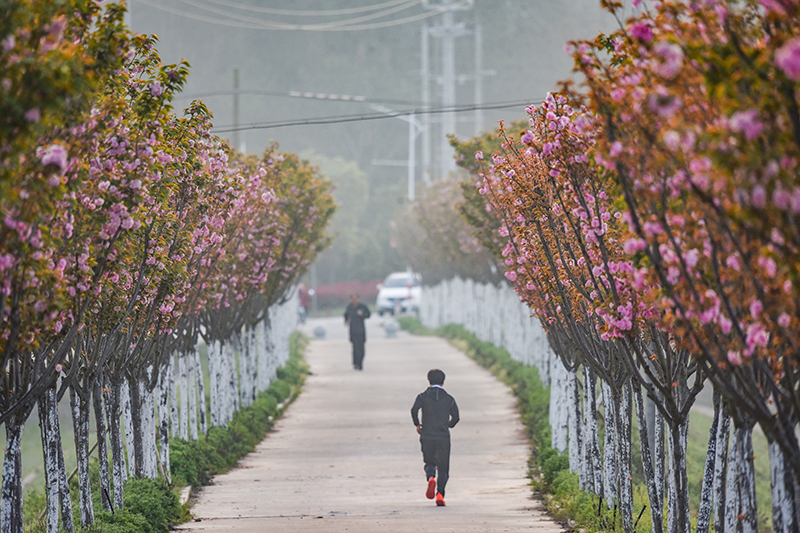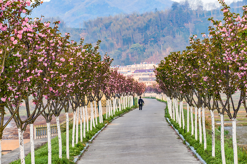 4月8日,在岳西县菖蒲镇菖蒲河大堤上拍摄的千株樱花盛开的情景。从3月底到4月初,随着气温骤升,岳西县菖蒲镇菖蒲河沿岸千米樱花大堤千株樱花正迎风怒放,一簇簇美丽浪漫的樱花,似锦如画,争奇斗艳,一束束淡淡的清香,令人陶醉。正如宋代诗人方岳所言:山深未必得春迟,处处山樱花压枝。五彩斑斓的春日美景,妆点着乡村,美了环境,愉悦着人们的身心,让人流连忘返。(县融媒体中心特约记者:王先国)