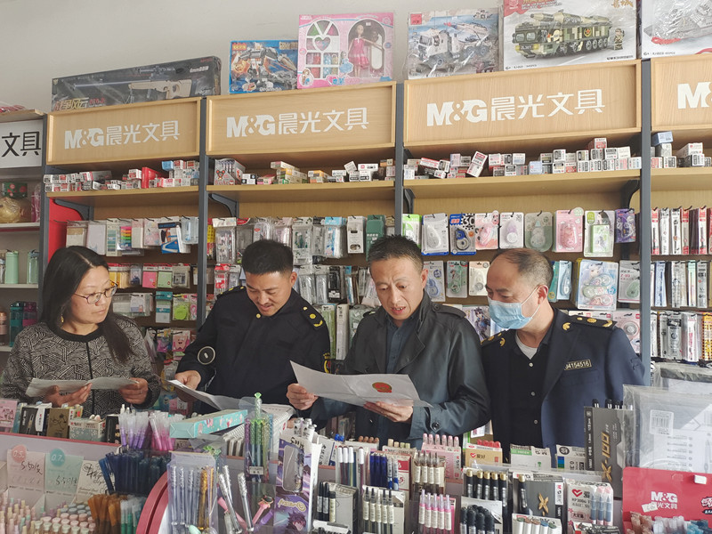 4月20日,菖蒲镇“扫黄打非”领导小组办公室联合镇综合行政执法大队、镇综合文化服务中心、镇市场监督管理所对菖蒲镇中心学校周边文化经营场所进行专项检查。