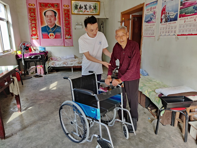 6月8日,首先收到轮椅的是港河村周岭组周双来,他1951年参加抗美援朝战争,1957年退役。今年5月份周双来突发脑出血,现在瘫痪在床,家里孩子在外务工,日常行动较为不便,依靠妻子在家照料。港河村村“两委”、村退役军人服务站得知此消息,立即为周双来申请了一副皮质轮椅,并将轮椅送到周双来家中。他高兴得像个小孩子,握着镇村来人的手说:“党和国家没有忘记我们,现在政策真好,从来没有想过在自己困难的时候党和政府及时为我送来了温暖。”他老婆王娟娣也感慨地说:“因为他行动不方便,在家请木匠制作了一副木质轮椅,坐上去不太舒服,现在有了这个皮的,很软和,谢谢你们。”