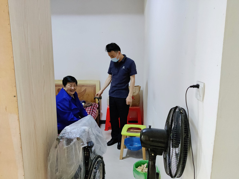 另一位得到轮椅的是女村民黄金凤,她是港河村大树组人,居住在菖蒲镇区易地扶贫搬迁安置房。因为中风偏瘫,黄金凤卧病在床,家庭经济困难,失去了自理能力,常年需要照料。菖蒲镇民政办为民办实事,为行动不便的黄金凤送去轮椅,解决她出行问题。黄金凤看到送来的轮椅开心地笑了,一个劲地感谢党和政府对困难群众的关怀,感谢镇村干部的细心关照。