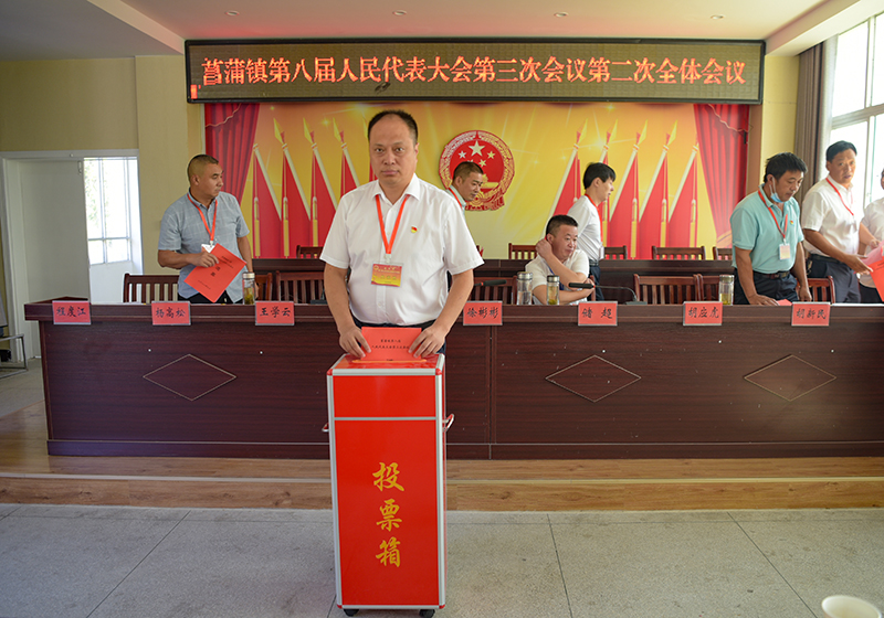 大会按照预定程序,依法选举储超担任菖蒲镇人民政府镇长,储彬彬担任菖蒲镇人民政府副镇长。大会举行了宪法宣誓仪式,新当选的镇长储超、副镇长储彬彬在大会上庄严宣誓。