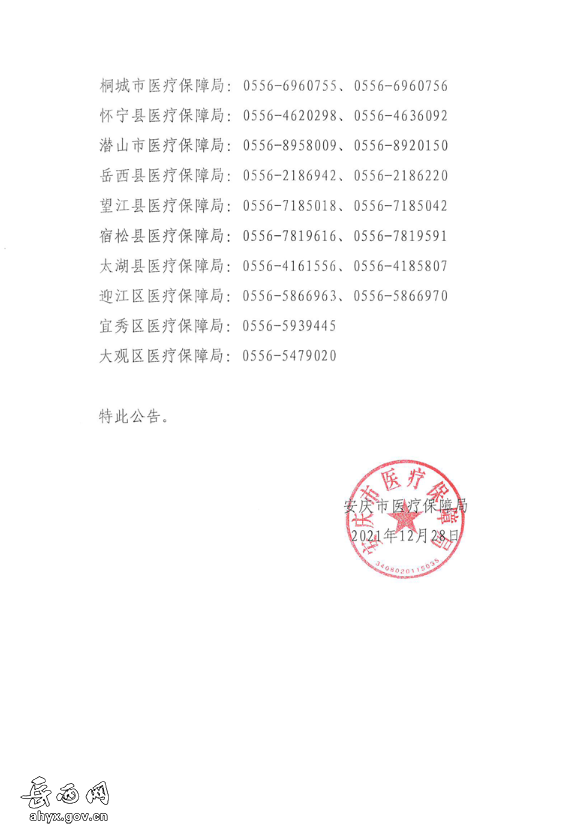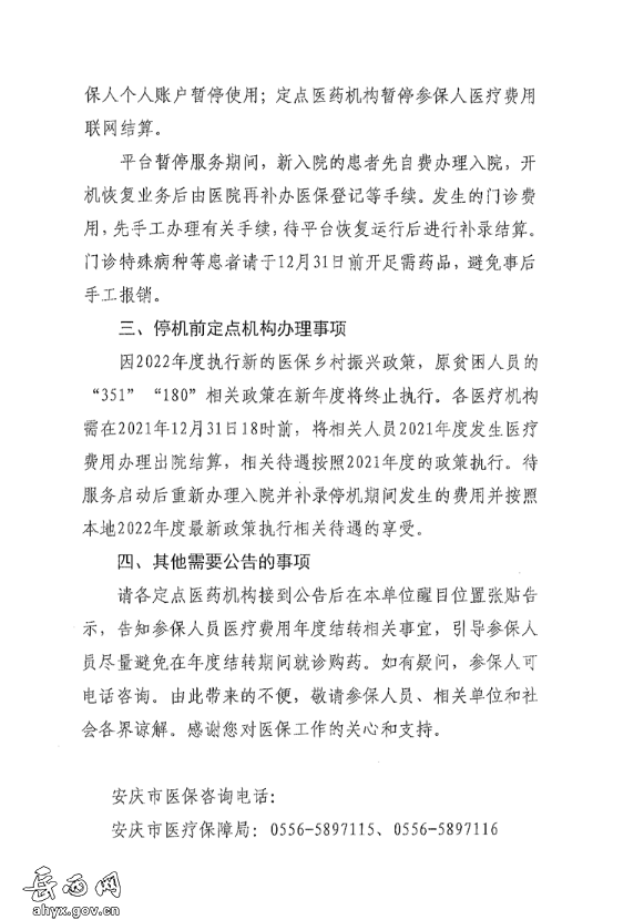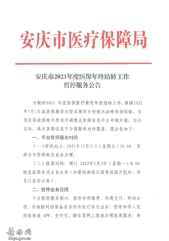 安庆市2021年度医保年终结转工作暂停服务公告